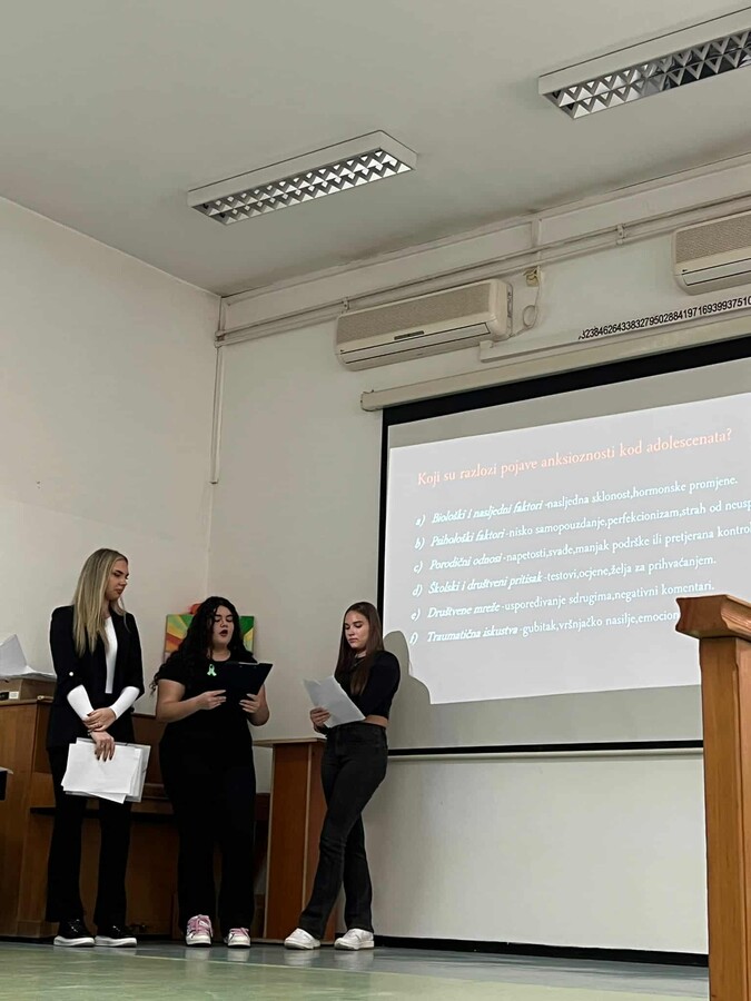 U amfiteatru škole prezentirane su teme: "Kako se nositi s anksioznošću u doba adolescencije" i " Mentalno zdravlje u digitalnom svijetu".
